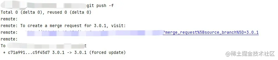 然后我们在进行强行提交(注意:这一步强行提交会将你回退到指定版本的代码强行覆盖,也就是说在这个版本之后的修改全都没了)