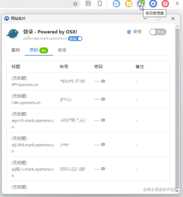 在浏览过程中,可以在二级导航栏看到当前网站下有多少个保存的密码,且支持随时查看。
