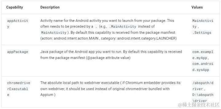 下面这些 Capabilities 仅支持 Android 驱动,比如 UiAutomator2。\