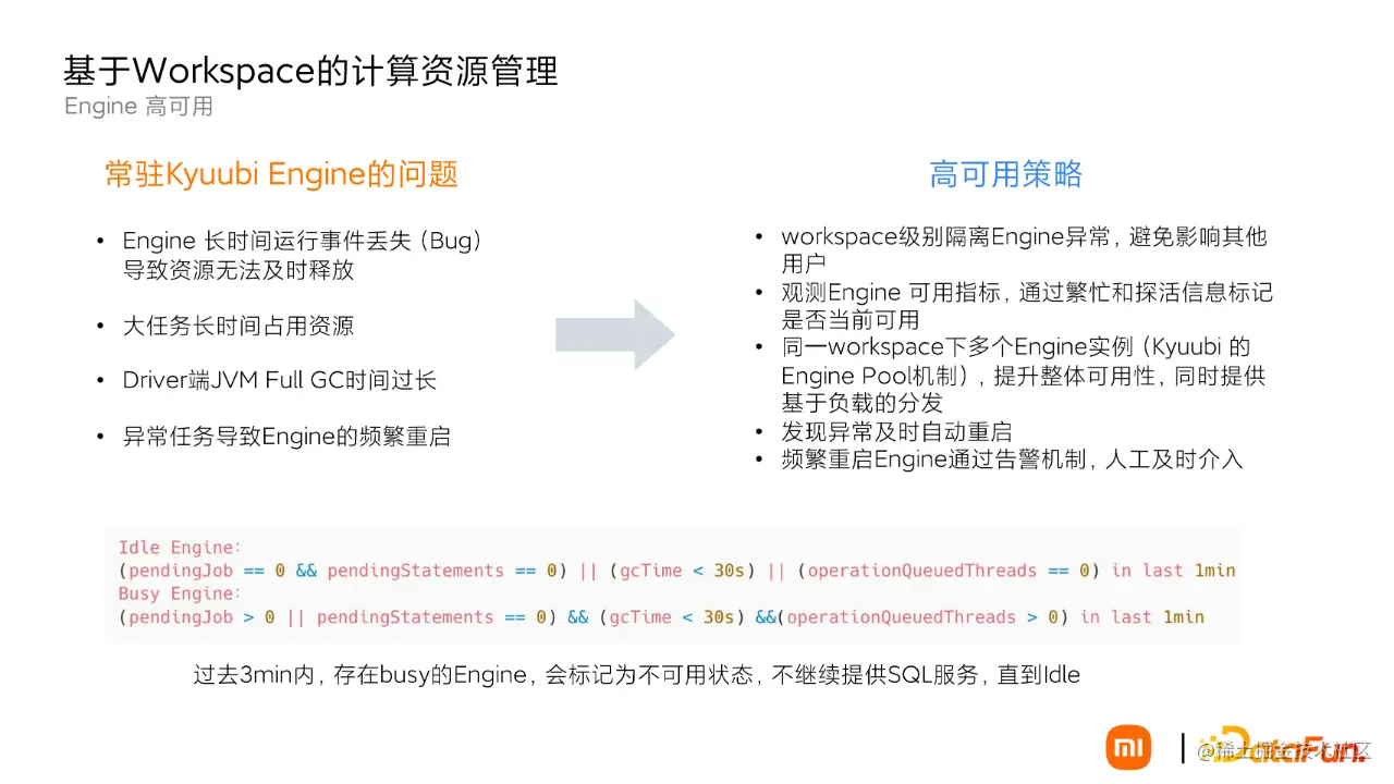 为什么需要 Kyuubi Engine 的高可用?因为在实际环境中,Kyuubi Engine 是一直长时间运行的,Spark 的 SQL 执行过程非常复杂,时间一长其稳定性就有了问题: