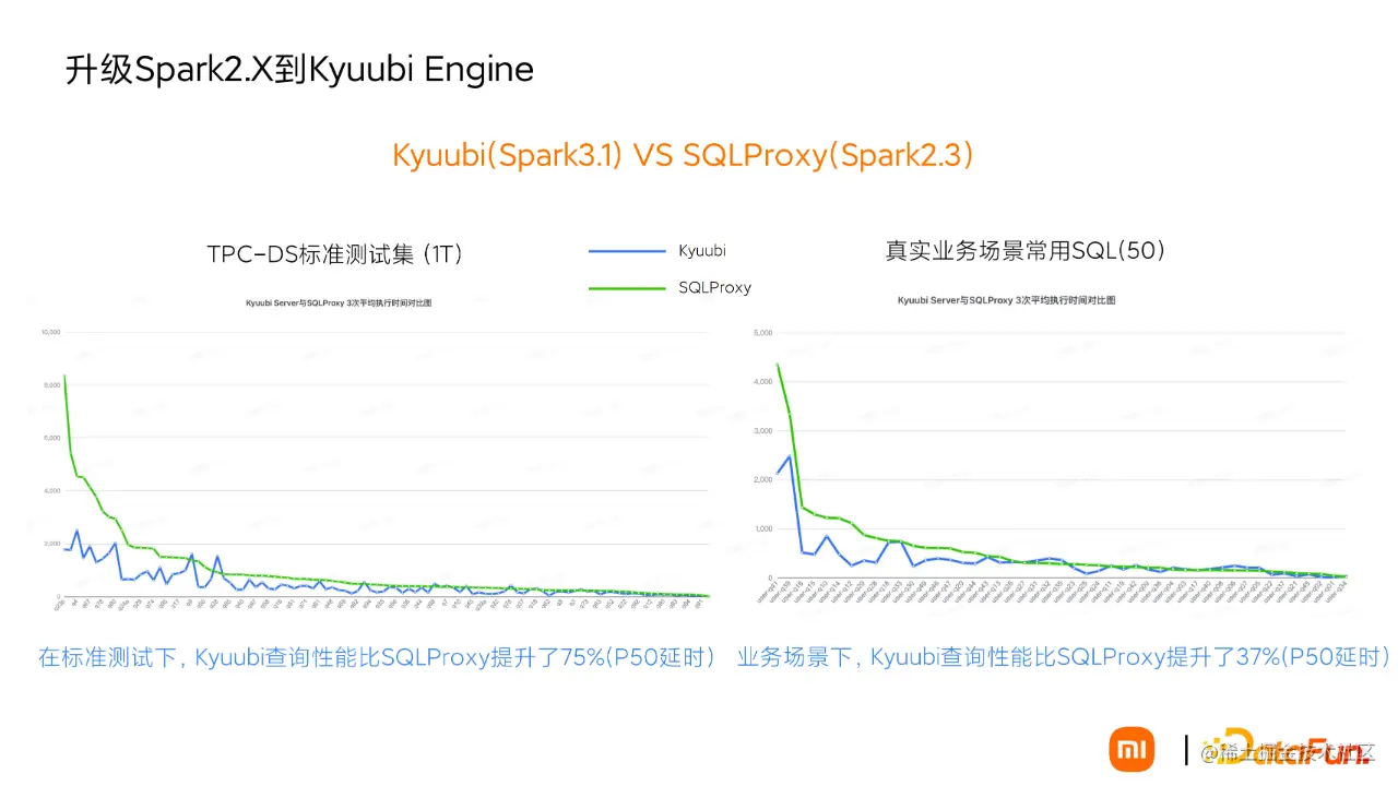 在真实的业务场景下,P50 延时也有 37% 的性能提升,长尾也基本跟 SQLProxy 一致,也就是升级的 Kyuubi Engine 的性能在多数情况下要优于 Spark2,整体上不会比 Spark2 更差。