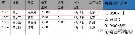 上面这个雇员表,可以将公司所有员工信息“结构化”、“标准化”,让管理者可以方便的进行统计和管理。