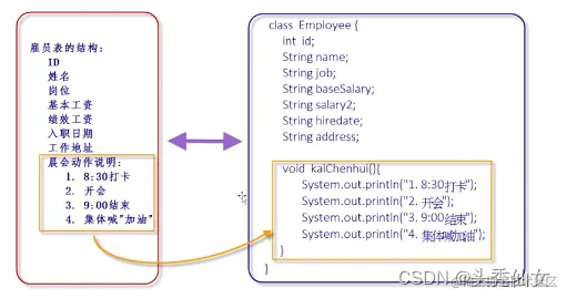 面向对象编程中,类对应的结构(表的field),我们可以定义出“雇员类”