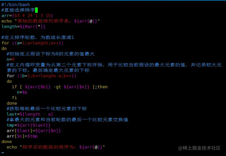 将指定排序位置与其它数组元素分别对比,如果满足条件就交换元素值,注意这里区别冒泡排序,不是交换相邻元素,而是把满足条件的元素与指定的排序位置交换(如从最后一个元素开始排序),这样排序好的位置逐渐扩大,最后整个数组都成为已排序好的格式。