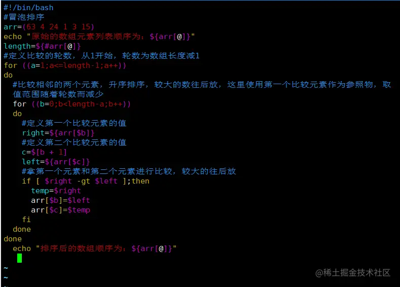 冒泡算法由双层循环实现,其中外部循环用于控制排序轮数,一般为要排序的数组长度减1次,因为最后一次循环只剩下一个数组元素,不需要对比,同时数组已经完成排序了。而内部循环主要用于对比数组中每个相邻元素的大小,以确定是否交换位置,对比和交换次数随排序轮数的减少而减少。