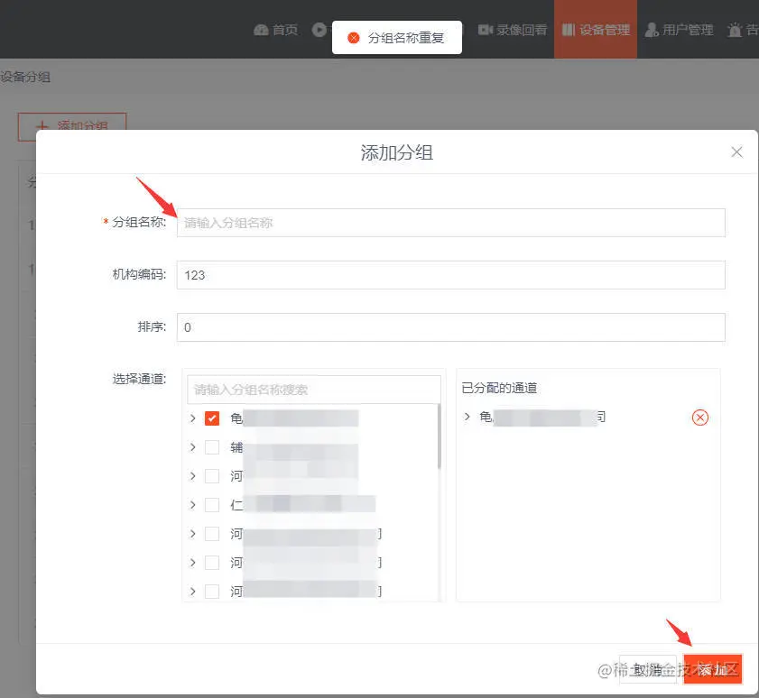 有用户反馈,EasyCVR在添加设备分组时出现如下情况,添加按钮一直在加载: