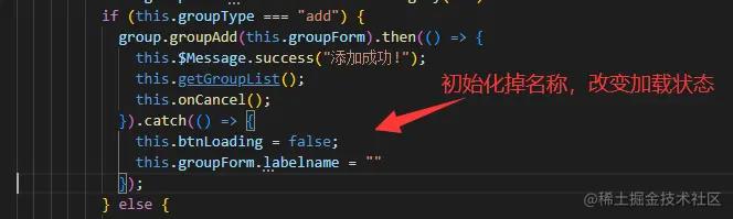 当分组名称添加重复时,添加按钮则一直处于加载状态,需要关闭窗口重新打开才会正常。重新打开后添加按钮状态恢复正常,但是此前添加的信息还在。
