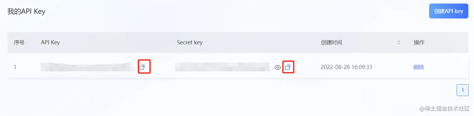 点击创建API key按钮即可
