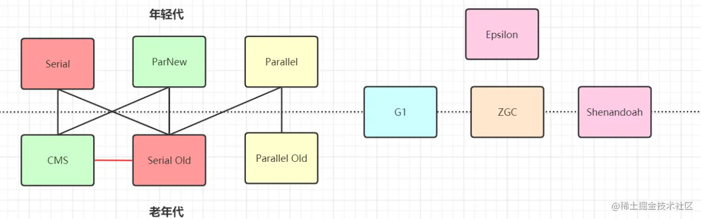 上述几个算法是理论,实现垃圾回收算法的叫做垃圾收集器