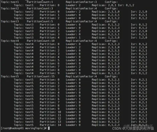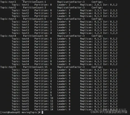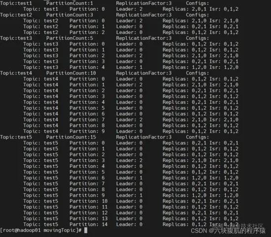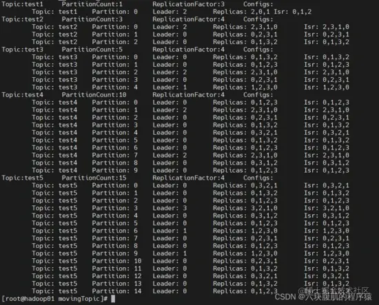 3.观察跑扩容脚本后所有topic的分区和副本分布情况