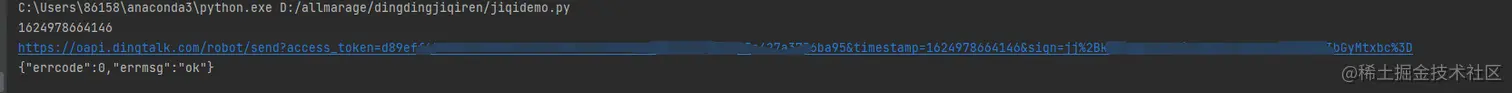 webhook = "https://oapi.dingtalk.com/robot/send?access_token=你的token×tamp="+str(timestamp)+"&sign="+str(sign)