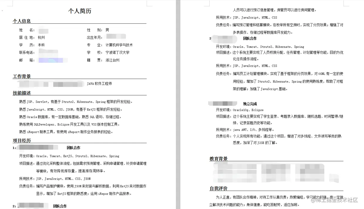 ②简历模板: