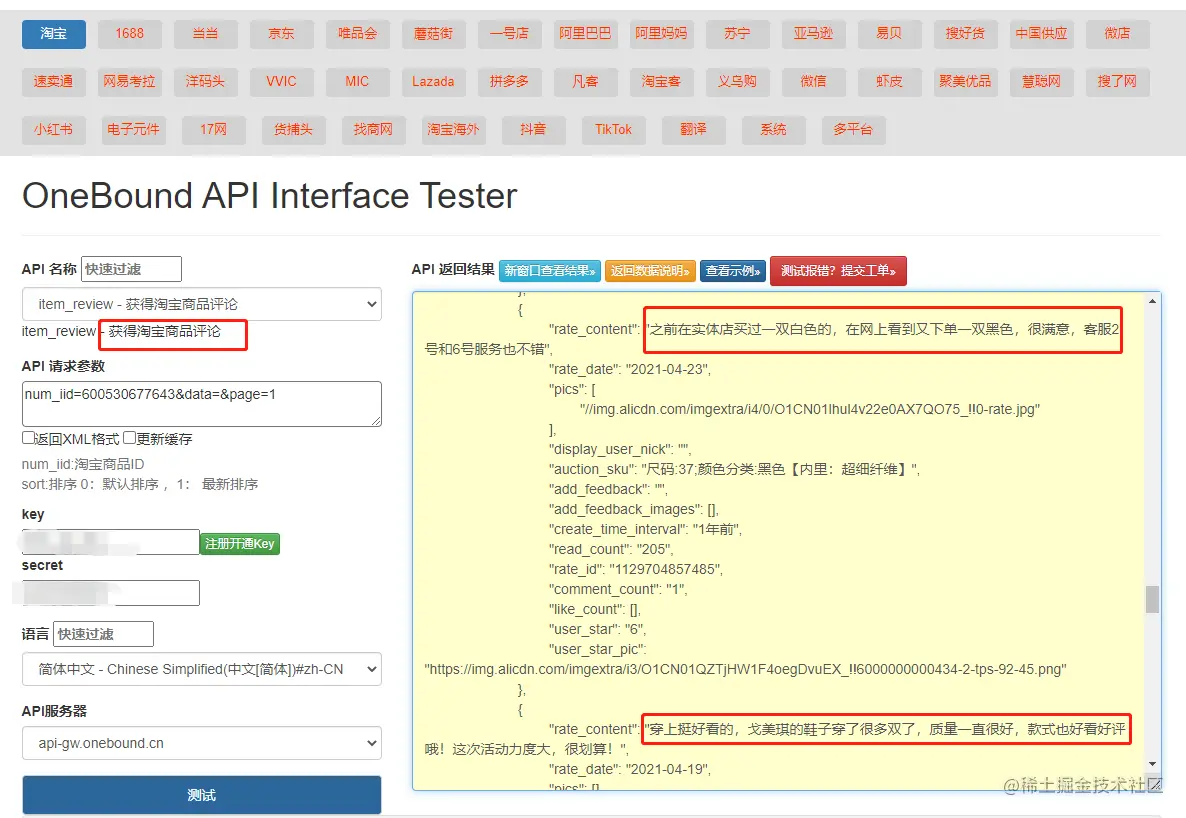 淘宝 / 天猫获得淘宝评论详情 API 调用示例说明: