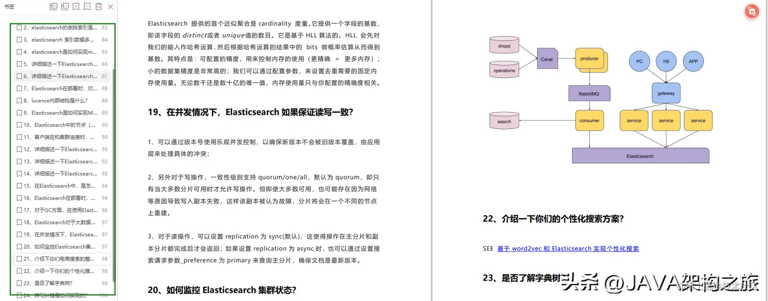 1、elasticsearch 了解多少,说说你们公司 es 的集群架构,索引数据大小,分片有多少,以及一些调优手段。