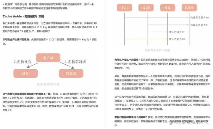 前面带你了解了缓存的定义、分类以及不足,你现在应该对缓存有了初步的认知。从这章,我将带你了解一下使用缓存的正确姿势,比如缓存的读写策略是什么样的,如何做到缓存的高可用以及如何应对缓存穿透。通过了解这些内容,你会对缓存的使用有深刻的认识,这样在实际工作中就可以在缓存使用上游刃有余了。