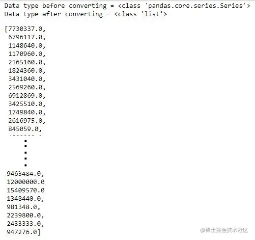# Python程序将 series 转换为列表