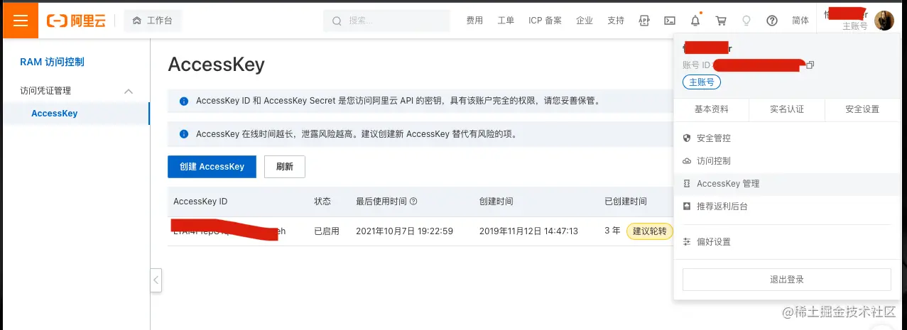 - 密码:阿里云的AccessKeySecret,具体查看方式见下图