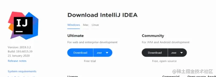 首先我们要找进入idea的官网,选择Ultimate版本点击download下载,下载完成后我们找到下载的地址双击打开安装包,关于安装位置的选择建议默认的路径即可(如果要更改,那么更改的路径不能含有中文)下面给大家一些图片解释以方便去理解。