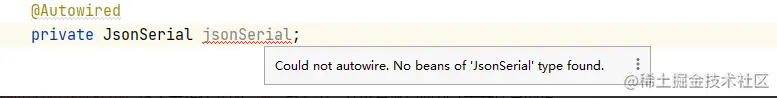 - 这时候在这个 SpringBoot 应用中直接注入 JsonSerial 对象会直接提示找不到这个对象: