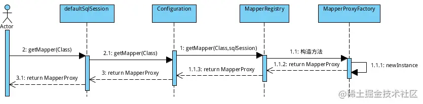 - MapperProxyFactory:这个类是MapperRegistry中存的value值,在通过 sqlSession获取Mapper时,其实先获取到的是这个工厂,然后通过这个工厂创建 Mapper的动态代理类;