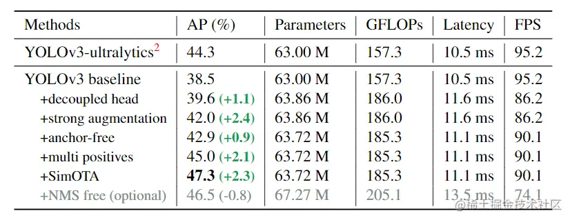 这也是作者为什么写这篇报告的原因,作者想通过经验丰富的优化,将这些最新的进展交付给 YOLO 系列。考虑到 YOLOv4 和 YOLOv5 对于 anchor-based pipeline 可能有些过度优化,作者选择 YOLOv3 作为起始点 (将 YOLOv3-SPP 看做默认 YOLOv3)。事实上,由于计算资源有限以及在各种实际应用中也没有足够的软件支持,YOLOv3 仍然是业界应用最广泛的检测器之一。
