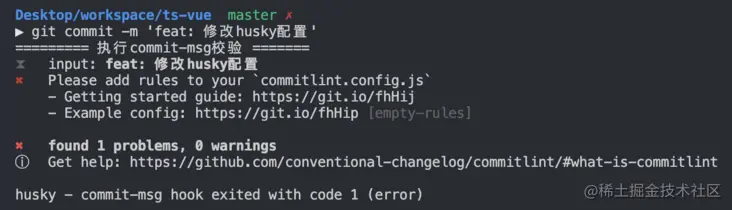 提示缺少commitlint.config.js文件,需要安装依赖并配置,步骤如下: