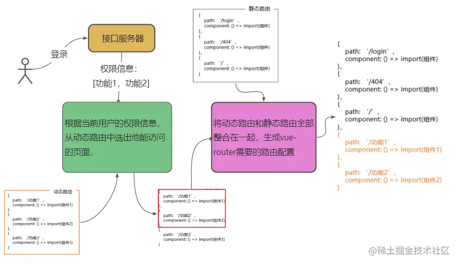 用户登录之后,根据后端返回的数据表示携带的功能不同,动态生成路由配置