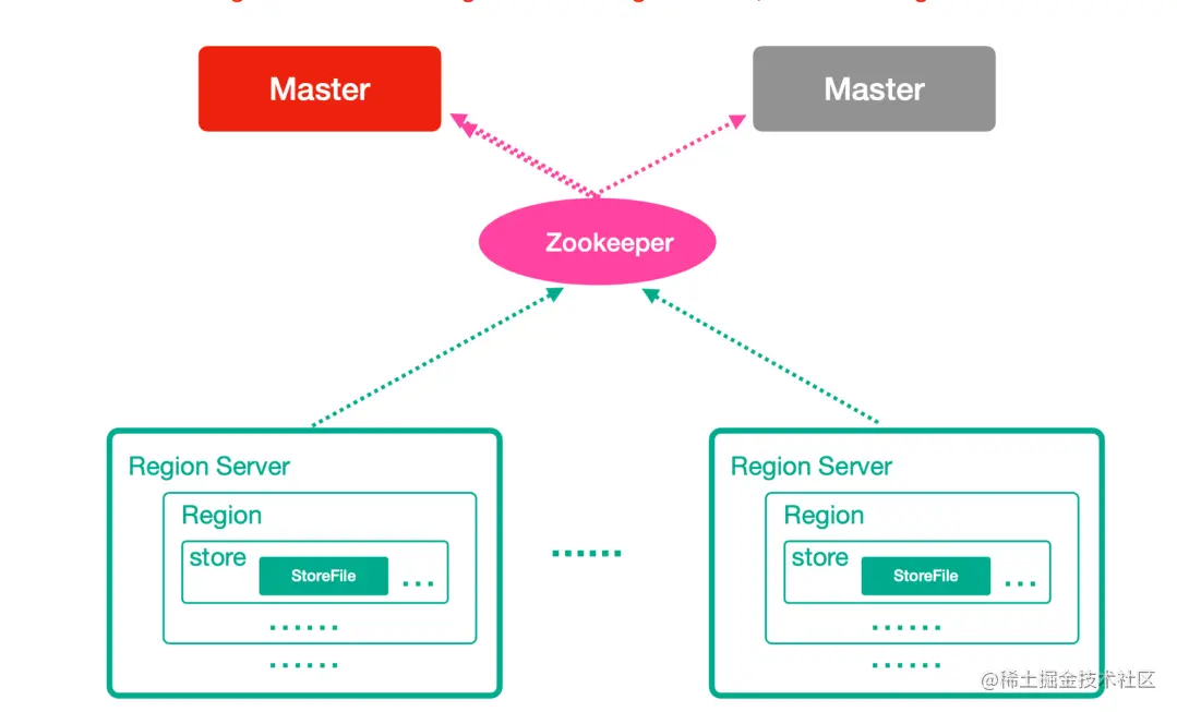 - 实现了HMaster的高可用,保存了HBase的元数据信息,是所有HBase表的寻址入口
