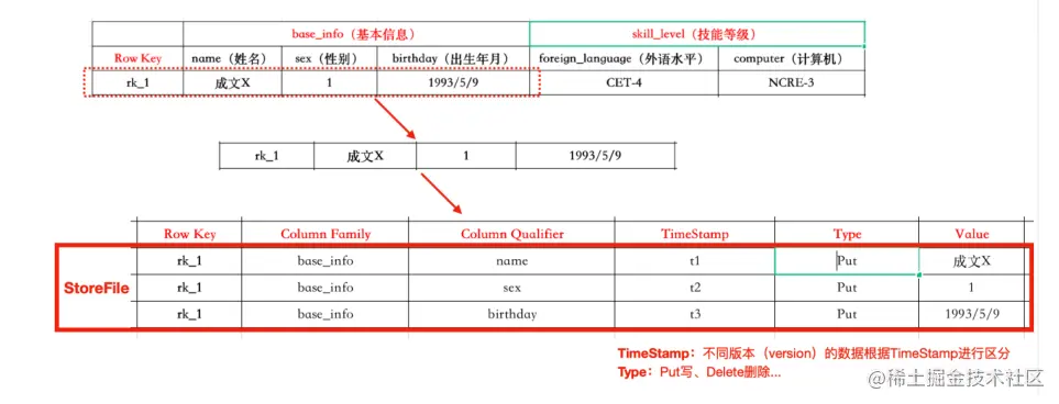 用于标识数据的不同版本,时间戳默认由系统指定,也可以用户显式指定。在读取数据的单元格时,版本号可以忽略,如果不指定,HBase默认会获取最后一个版本的数据返回