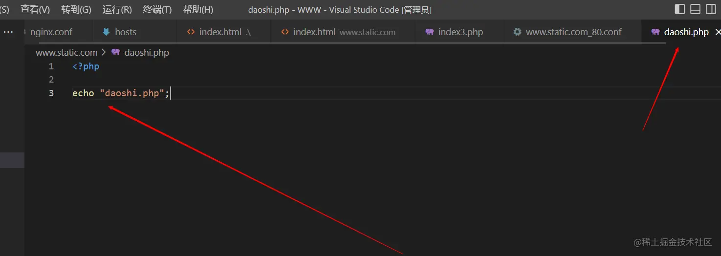 例如:我输入的地址是 www.static/daoshi-shen… 就会显示 www.static/daoshi.php 里边