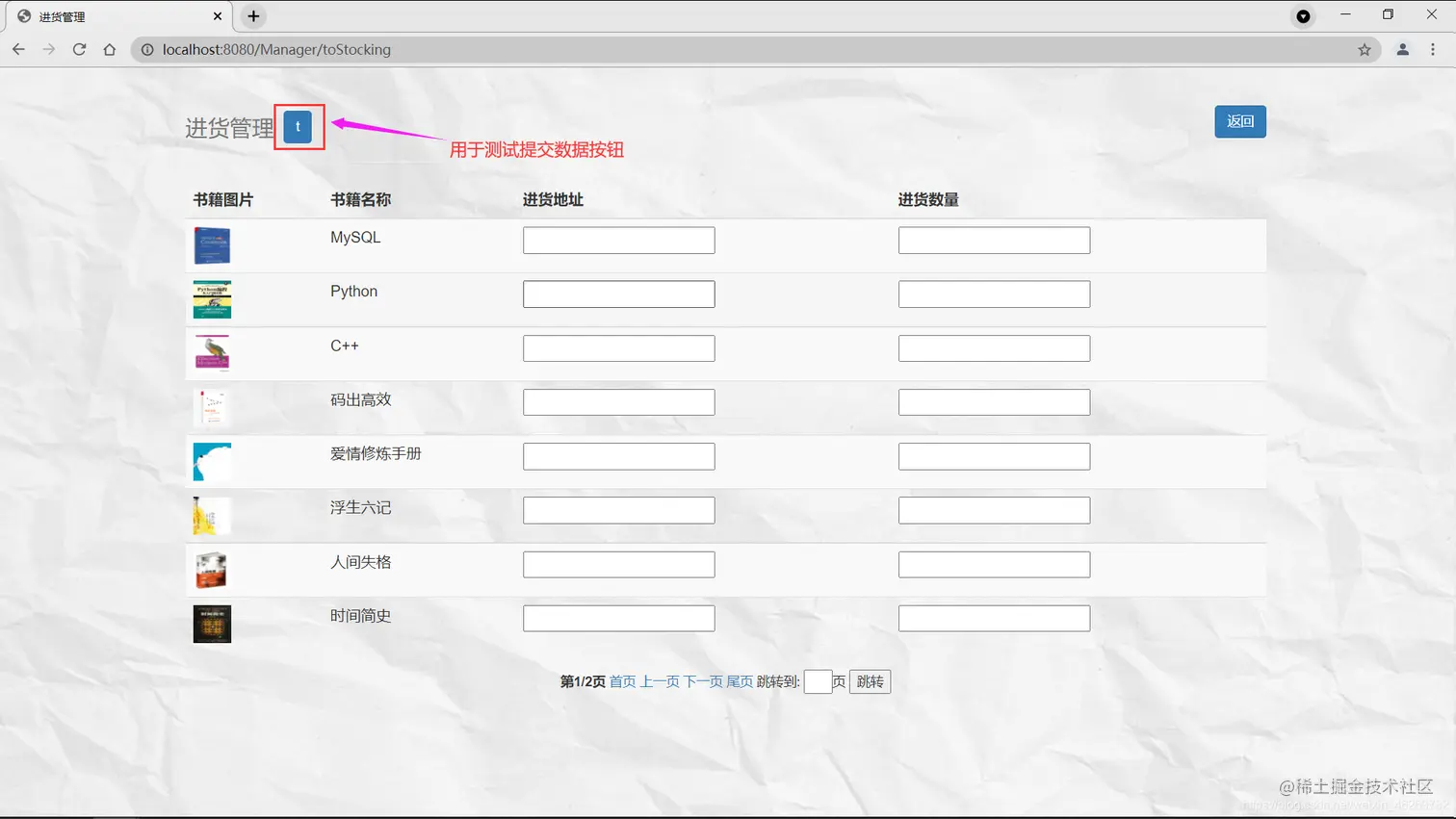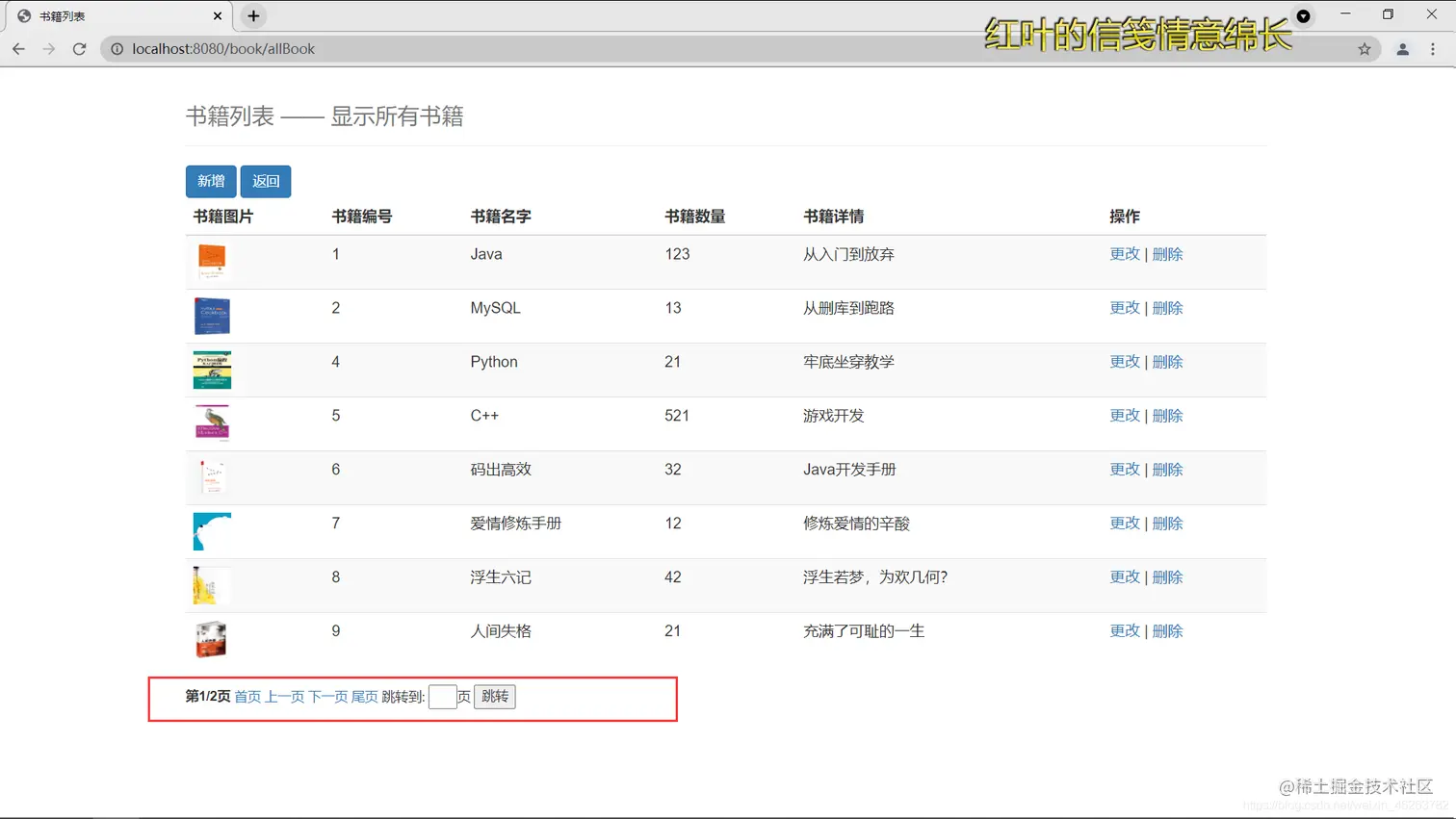 书籍列表ing,管理员可以在这新增,更改和删除书籍,