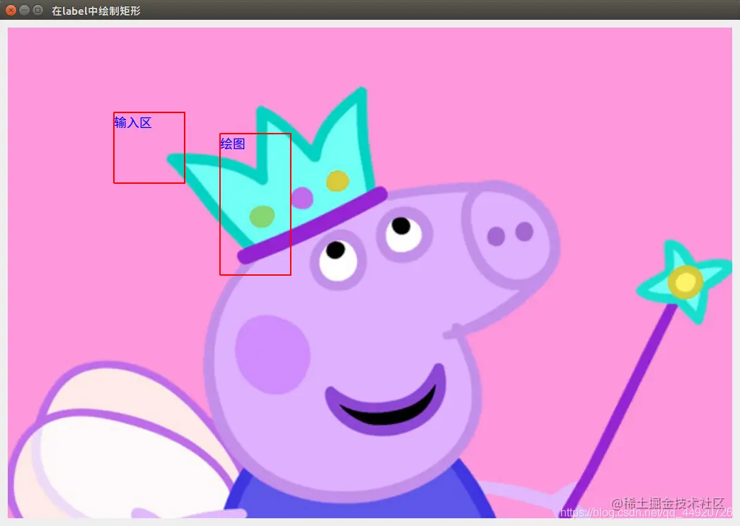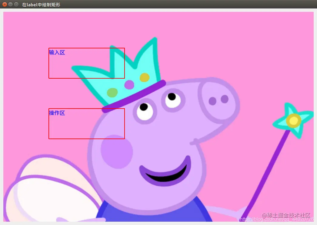 代码运行后如截图所示,这个升级版的亮点在于在制作界面Qlabel绘制方框时,可以根据具体界面的需求来绘制多个矩形方框.而不需要一直在MyLabel 类中设置方框(x,y)的位置,可以直接在调用函数中设置矩形的坐标直接绘制出矩形.这样方便制作界面,减少代码的重复率.