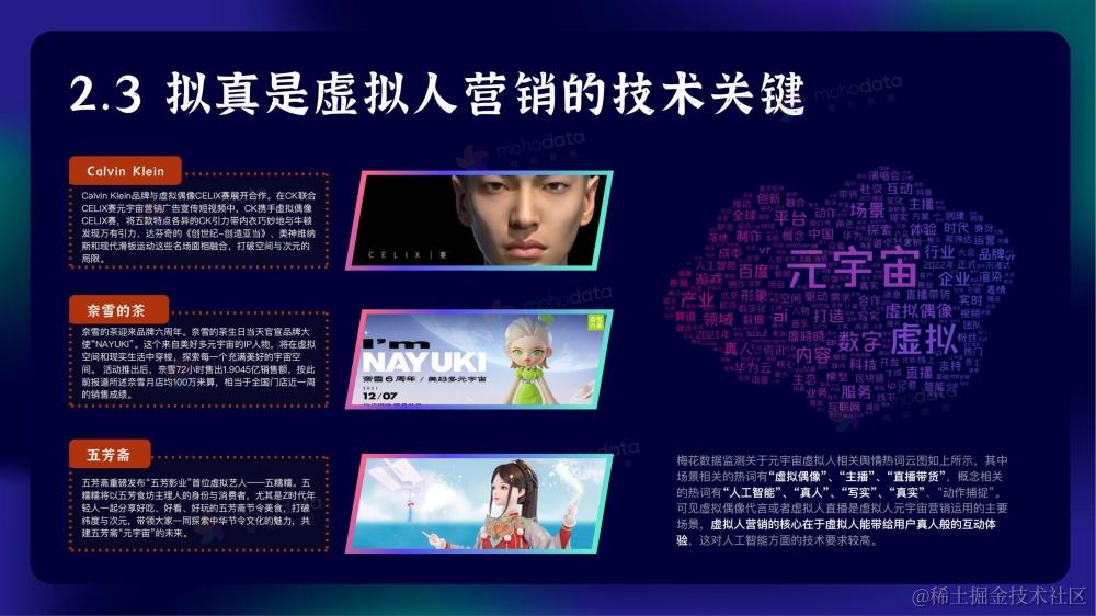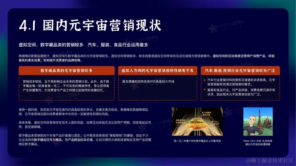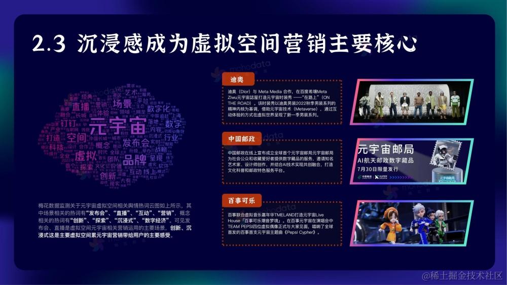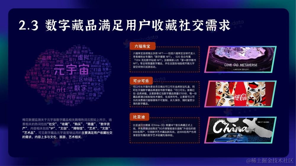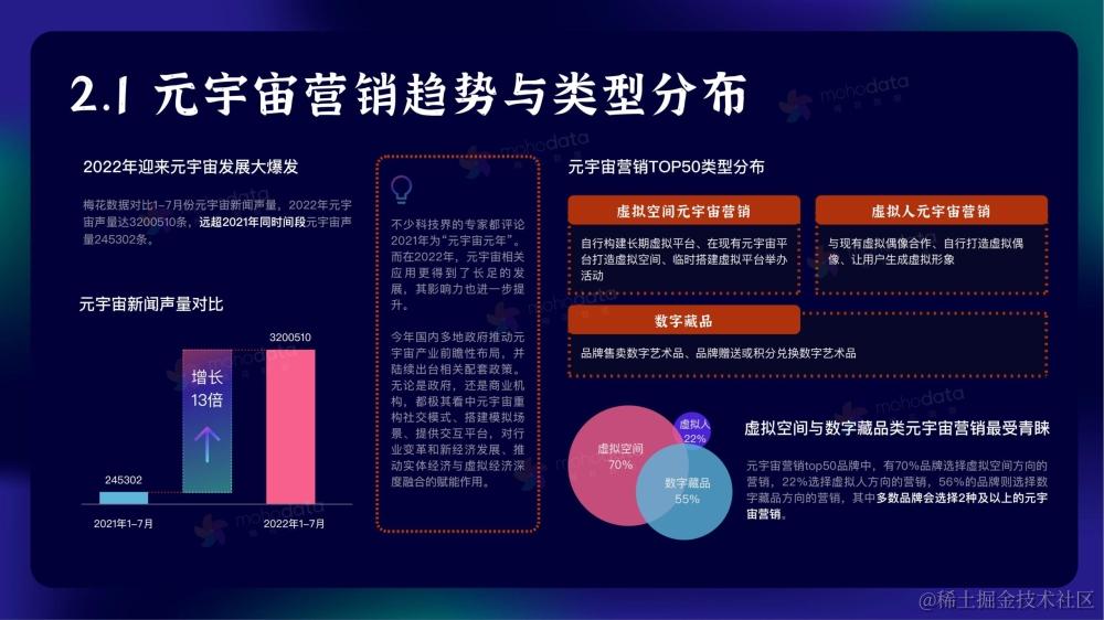 “元宇宙”⾃去年起,就成为科技界最热⻔的话题之⼀,科技公司、互联⽹⼤⼚纷纷布局元宇宙,抢占⻛⼝机会。在营销界,元宇宙的概念也渗透到各⾏各业。众多品牌将其视为品牌建设与营销的战略要地,游戏业、运动界、潮流圈、汽⻋⾏业,再到新消费领域,各⼤品牌⽆不在元宇宙的世界⾥找到新的增⻓点。