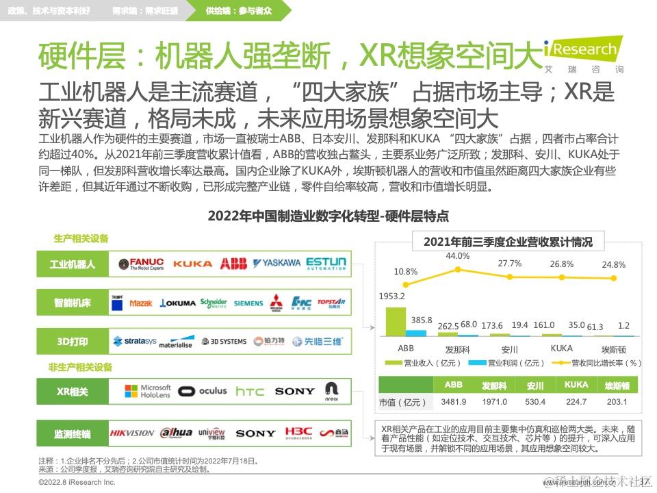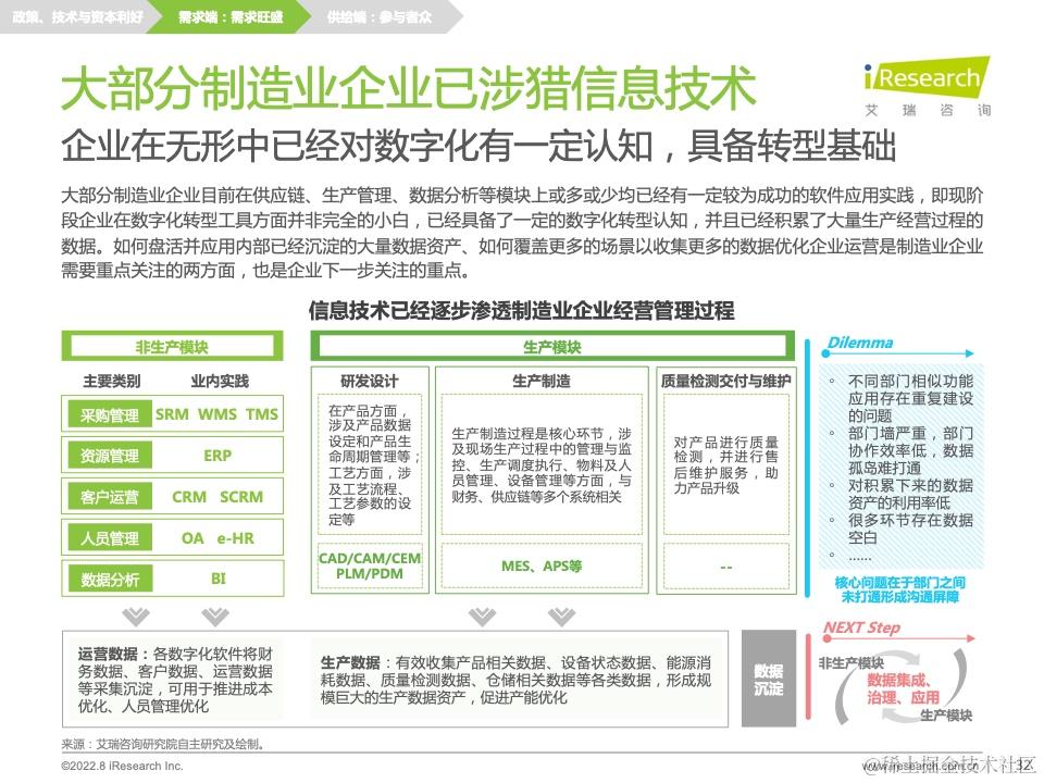 《2022年中国制造业数字化转型研究报告》立足制造业整体,围绕制造业数字化转型的系列问题进行讨论,试图帮助企业建立对数字化转型的认知,助力企业摸索符合自身特征的转型之路。