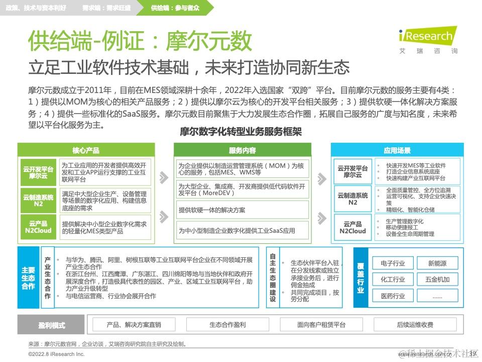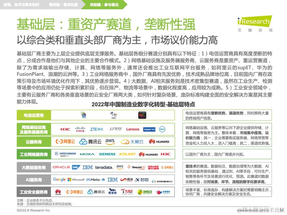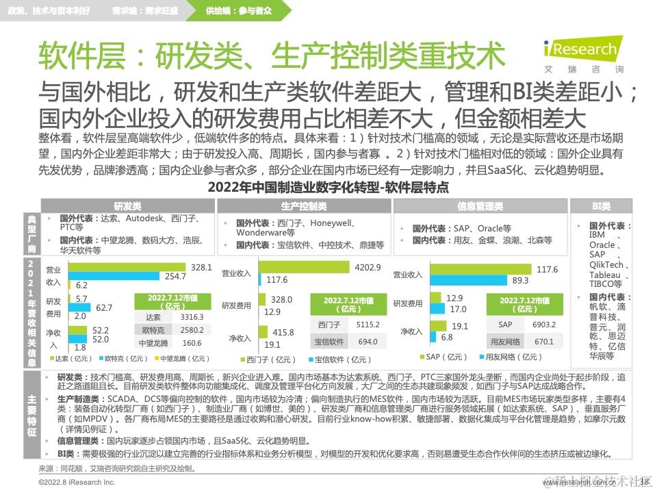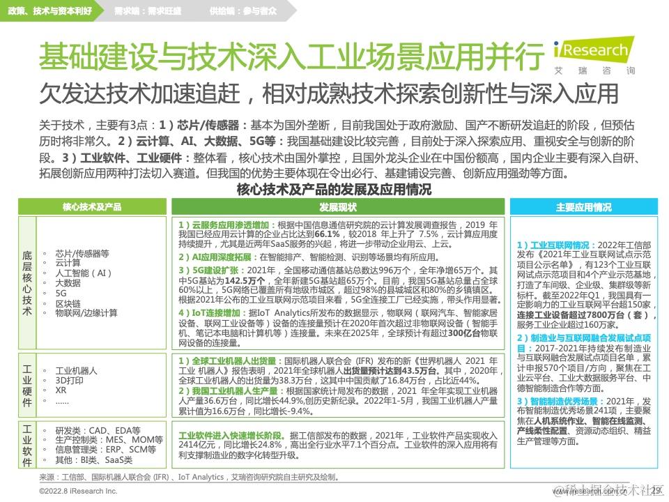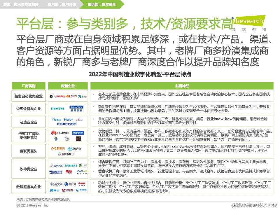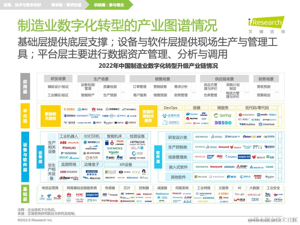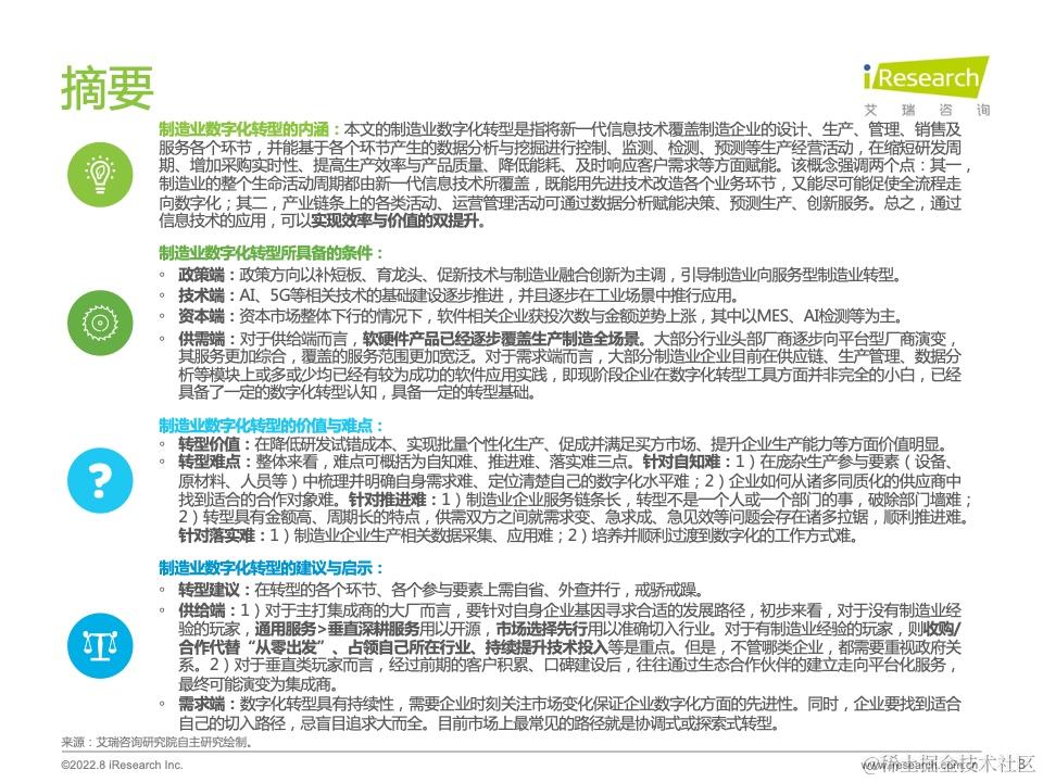 在此分析结果下,报告还提出了针对前文痛难点的转型建议,并针对供需双方、技术环境提出相应的研究启示。此外,报告中穿插了不少业内优秀的公司及产品案例,帮助读者更加具象化地理解制造业数字化转型的发展现状和前沿热点,引发新的思考。