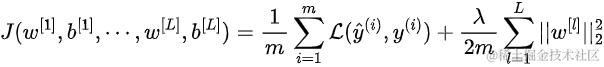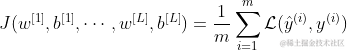 当然,成本函数 J 是每个层 1、...、L 的权重和偏差的函数。m 是训练样本的数量,ℒ 是损失函数。