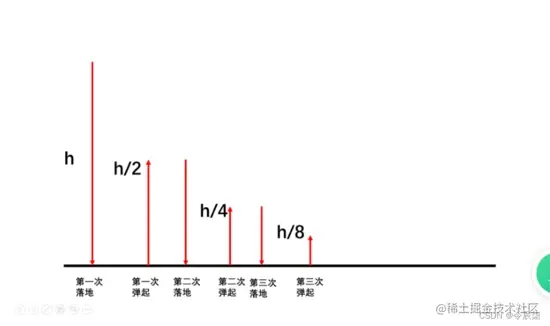 解题思路:相信这题大家问题应该可以读懂,我用一张图解大家就可以明白了。关键就是第n次落地就是第n-1次弹起,想明白这个就可以看懂代码了。