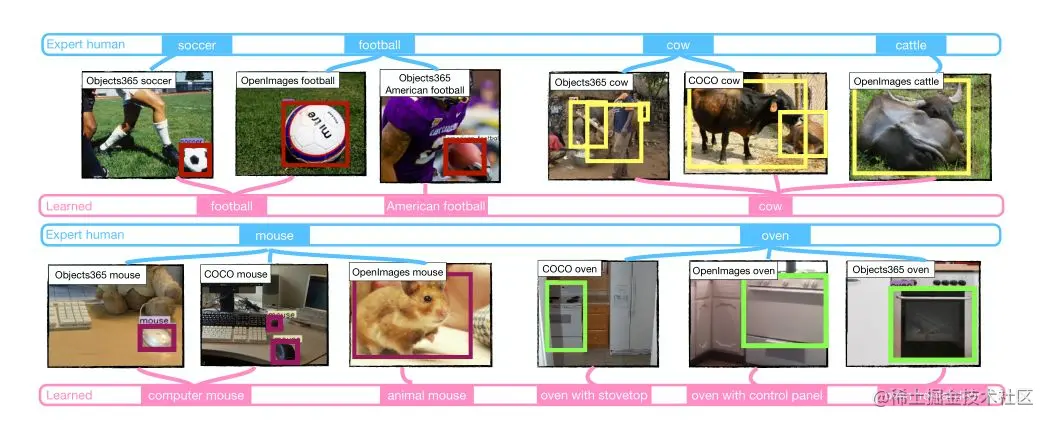 为此,作者提出了一种仅使用视觉数据的全自动方法来统一多数据集检测系统的输出空间。利用来自不同数据集的类似概念的目标检测器对类似的新目标进行检测。这使得可以定义跨数据集合并概念的成本,并完全自动地优化通用分类法。本文的优化使用新的0-1整数规划公式,联合发现了统一分类法、从该分类法到每个数据集的映射以及统一分类法上的检测器。基于该统一分类法训练的目标检测器具有来自所有训练数据集的大量自动构建的概念标签表。