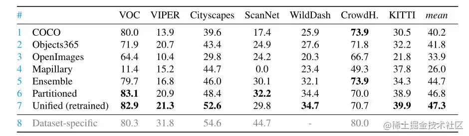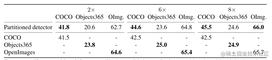 表2.特定于数据集的检测器vs分区检测器。