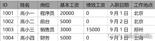 上面这个雇员表,可以将公司所有员工信息“结构化”、“标准化”,让管理者可以方便的进行统计和管理。