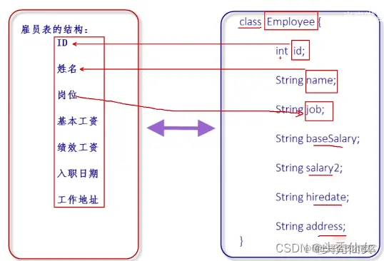面向对象编程中,类对应的结构(表的field),我们可以定义出“雇员类”