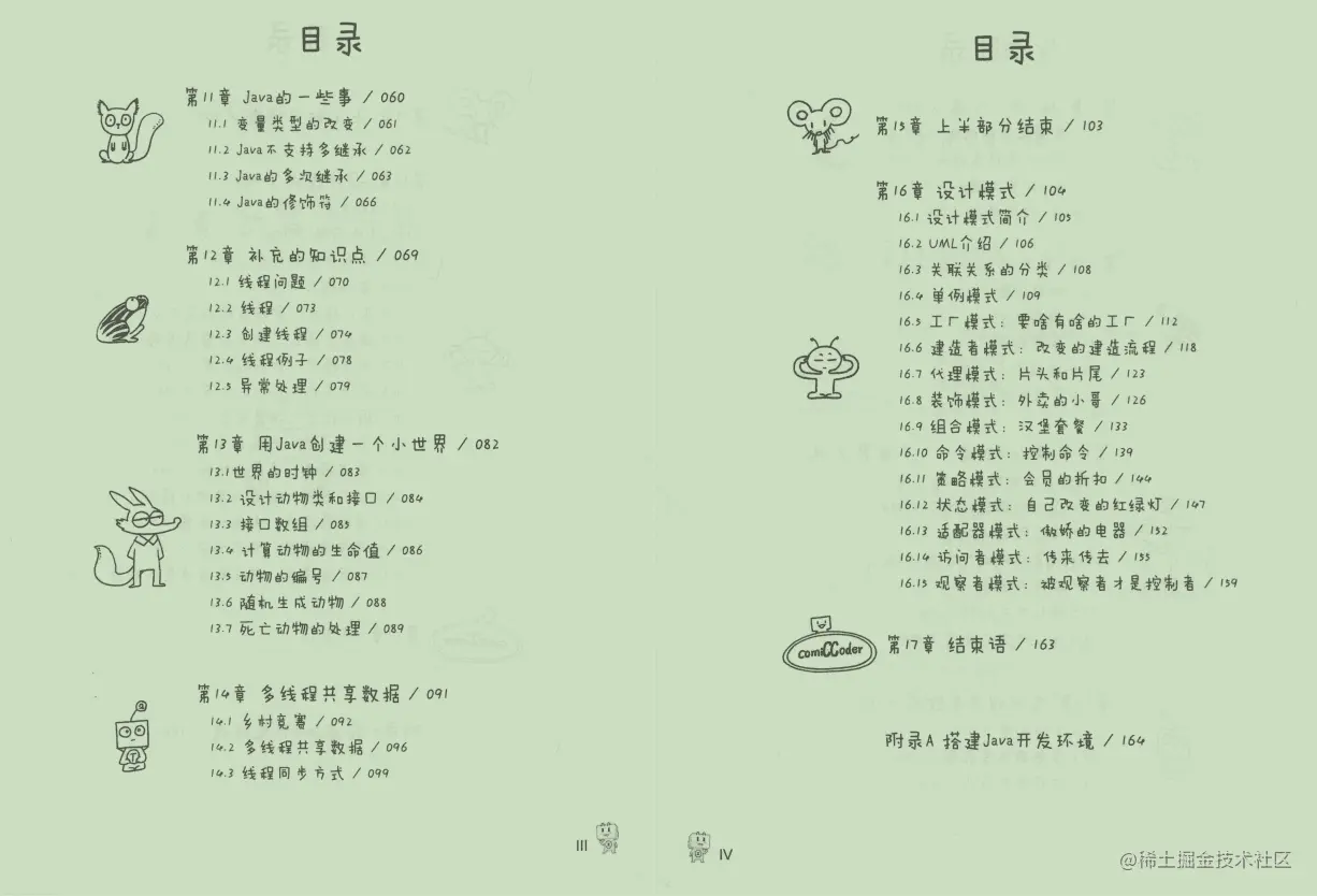 《漫画面向对象编程》借助于漫画展示的形式,使用Java编程语言讲解了面向对象编程中的各种概念和理论知识,比如面向对象的简介、由类创建一个对 象的方法、类的编写与对象的创建、类的构造函数、类的方法、修饰符、Java 中的封装/继承/多态等特征、Java 中的线程、用Java创建一个小世界、多线程共享数据,以及面向对象中的各种设计模式等。本书的附录还讲解了搭建Java开发环境的步骤和方法,便于读者练习、实践书中内容。