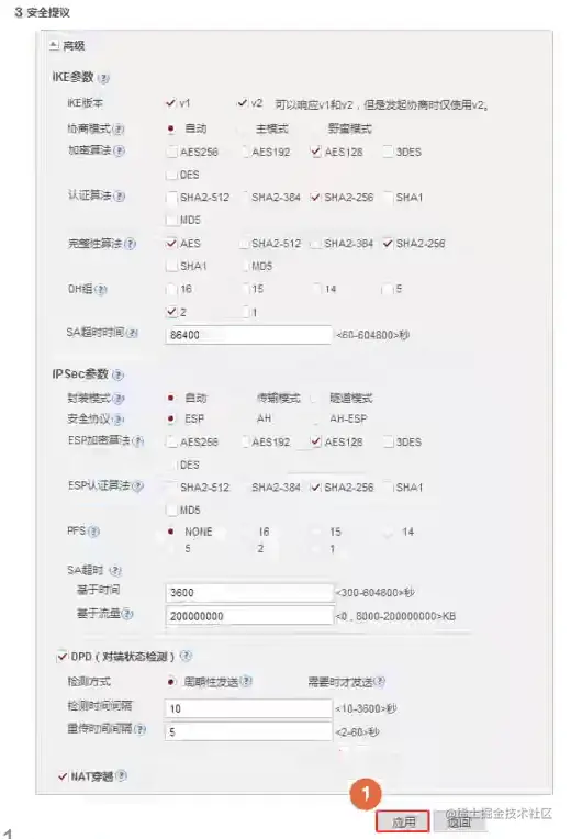 填写IPsec基本配置