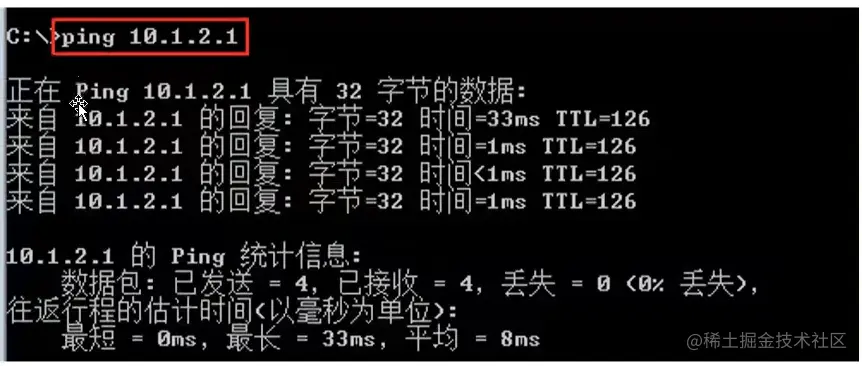 在PC1上ping测试到PC2的地址,测试感兴趣流的连通性。