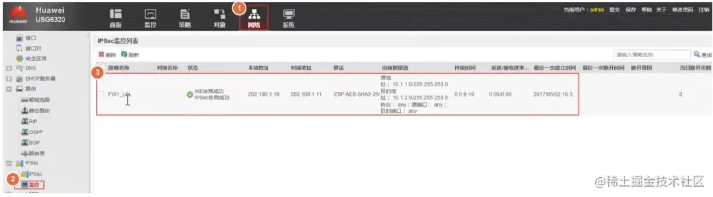 点击【监控】,查看IPsec协商状态。