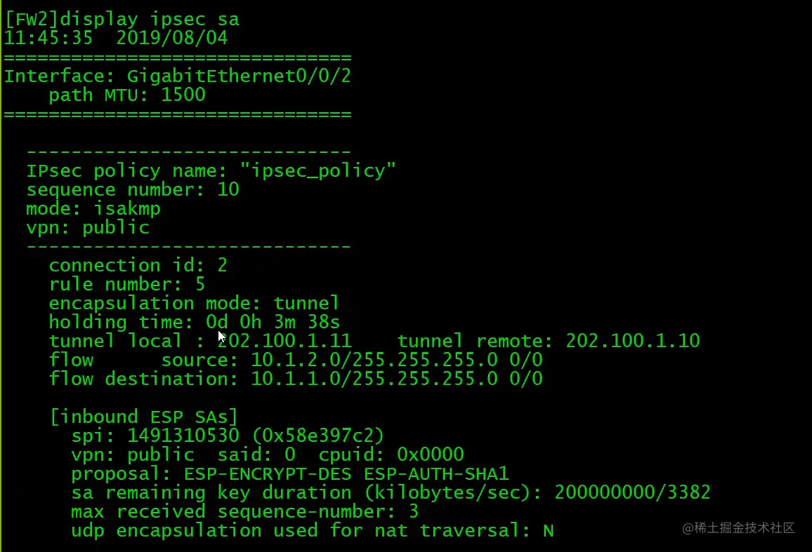 FW2配置IPsec-2(CLI)