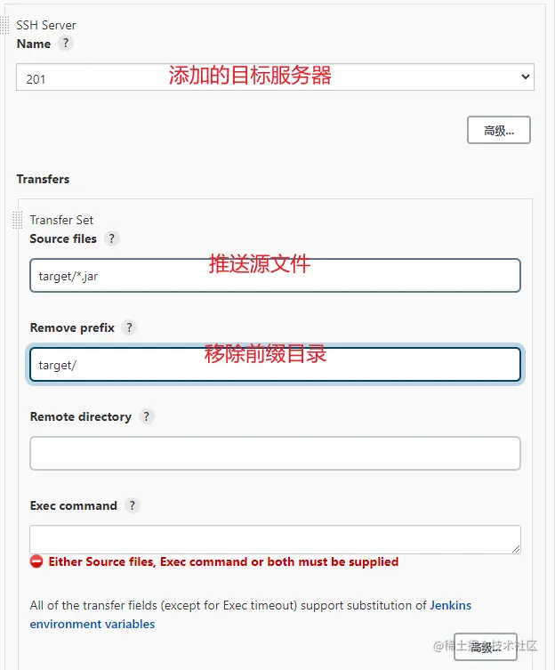 那么我们接下来的难点就是如何将Jenkins打包好的程序推送到目标服务器上并开始执行。