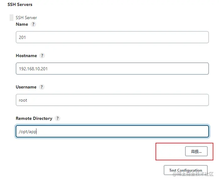 以下需要填写远程服务器的相关信息,这里需要非常注意的是
