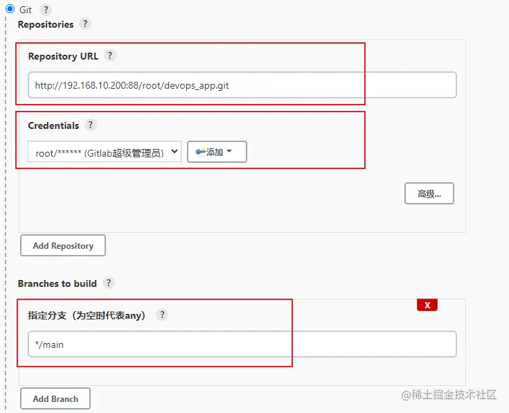 还有一点一定要注意,在GitLab上已经没有了master分支,统一全部为main分支。所以一定要记得修改Branches to build位置的分支