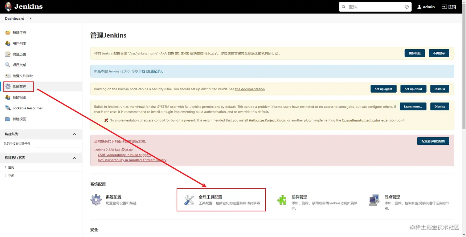 那么我们进入到系统管理>全局工具配置,进行相关配置